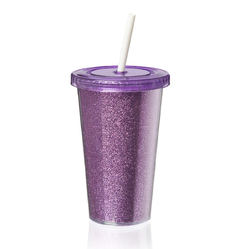 Vaso térmico con sorbete, ideal para bebidas frías. Libre de BPA. Cuerpo cristal con insert con brillante. Capacidad 500 cc. Lavar a mano, no usar en microondas.