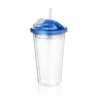 VASO TERMICO STAR 500 CM³, TAPA AZUL TRANSLUCIDO, CON IMP. -