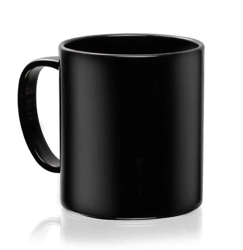 Jarro mug plástico. Acabado exterior alto brillo. Gran capacidad, 380cc.